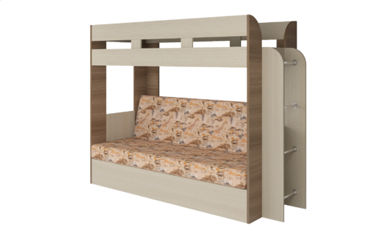 Кровать детская двухъярусная Карамель 75 анкор светлый бодега темный, диван - велюр Саванна (сборка на любую сторону) спальное место верх 80х190, низ 120х185