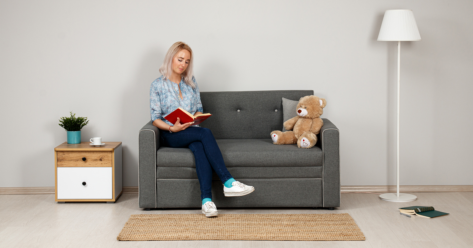 Диван-кровать Найс - компактное современное решение для гостиных, квартир-студий, детских и подростковых комнат. Может использоваться в качестве постоянного спального места для детей и подростков или гостевого спального места взрослого.