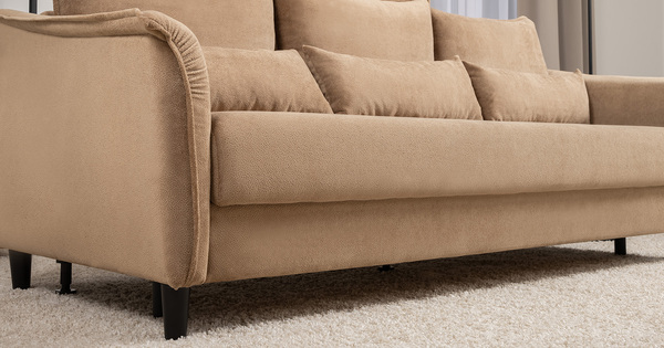 Изогнутые подлокотники в форме лепестков придают коллекции изысканный и элегантный вид, а дополнительные декоративные подушки обеспечат поддержку тела и помогут уютно устроиться на диване. В наполнении дивана используется высокоэластичная пена, которая адаптируется к форме вашего тела и гаранитует максимальный комфорт во время отдыха.