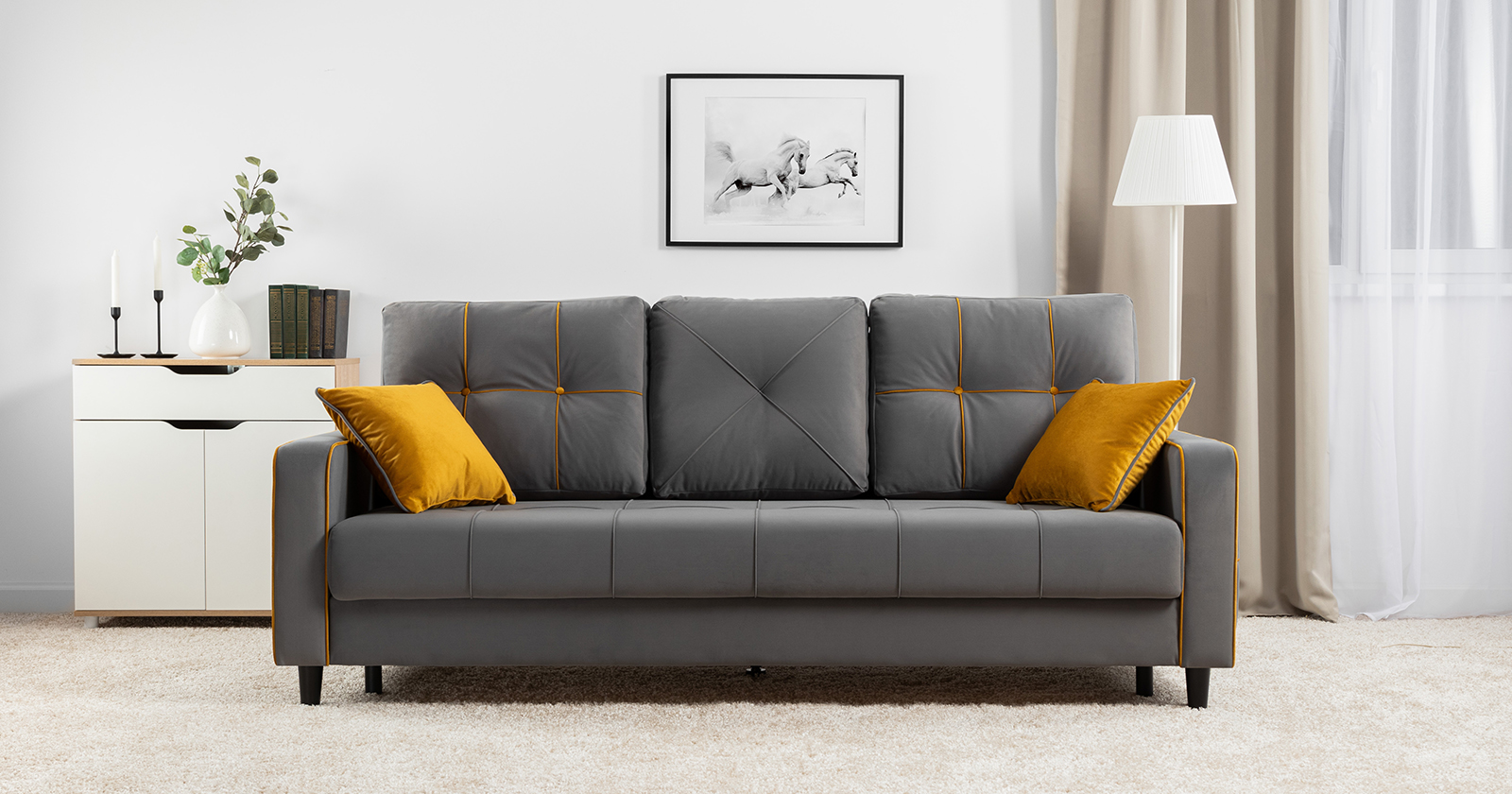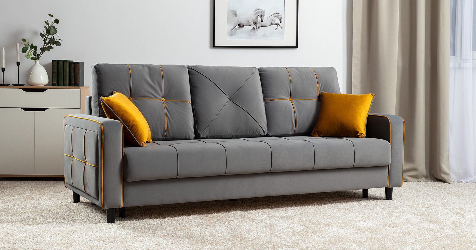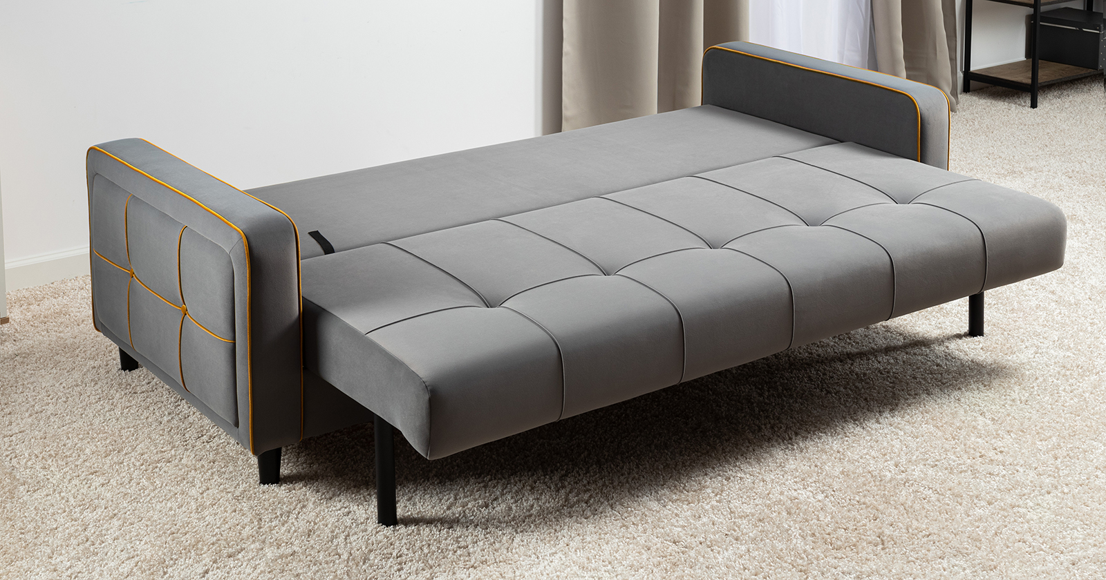 Диван-кровать прямой Черри ТД 287 велюр Irida 21 серый, Эвита умбер горчичный