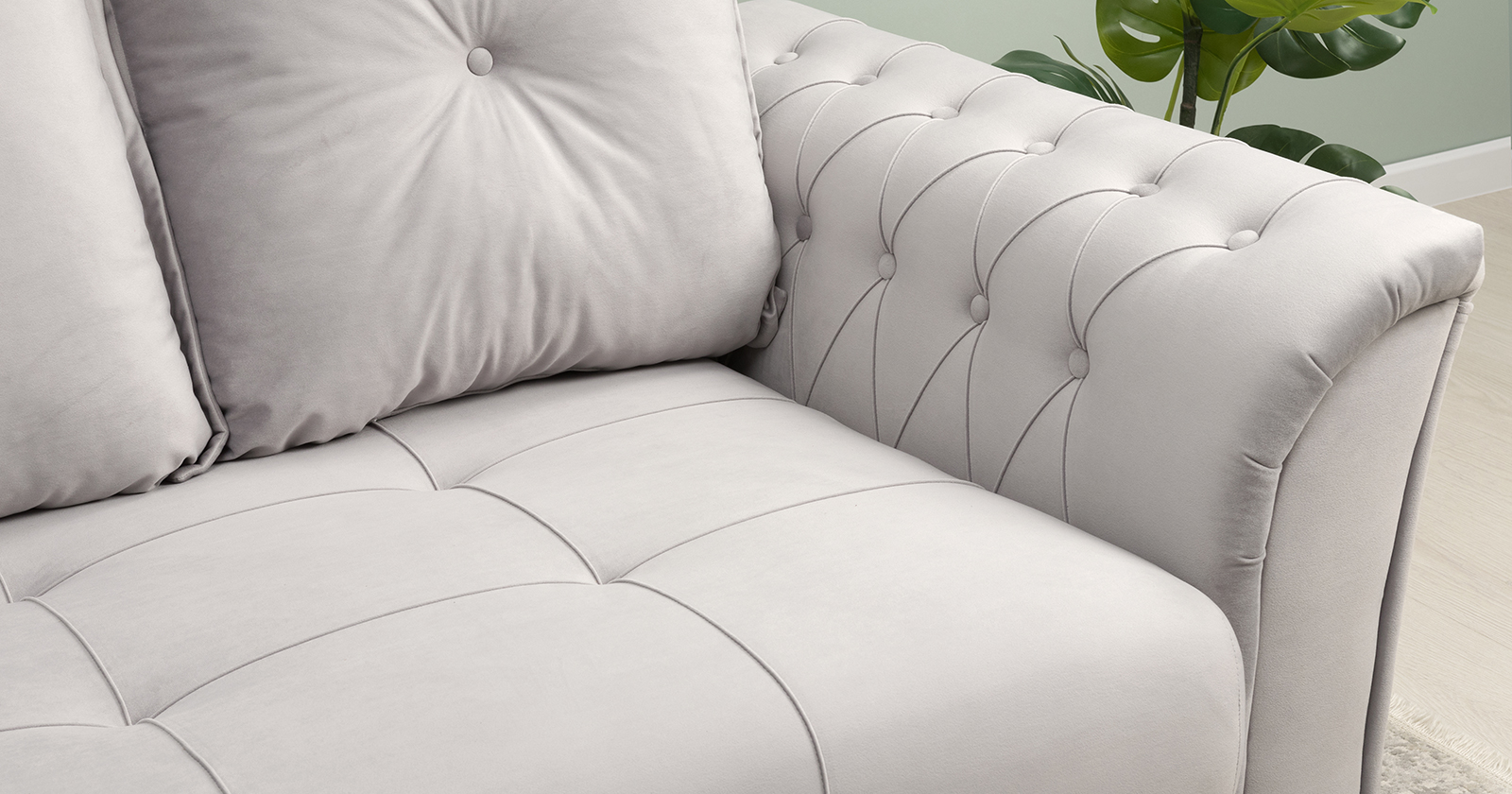 Декоративная отстрочка, защипы и утяжки на сиденье; защипы и утяжки с пуговицами на подлокотниках; утяжки с пуговицами на приспинных подушках