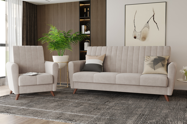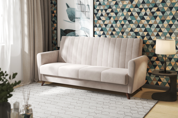 Диван-кровать прямой Монако велюр Вивальди 4 бежевый с пружинным блоком (высота опор - 120 мм)