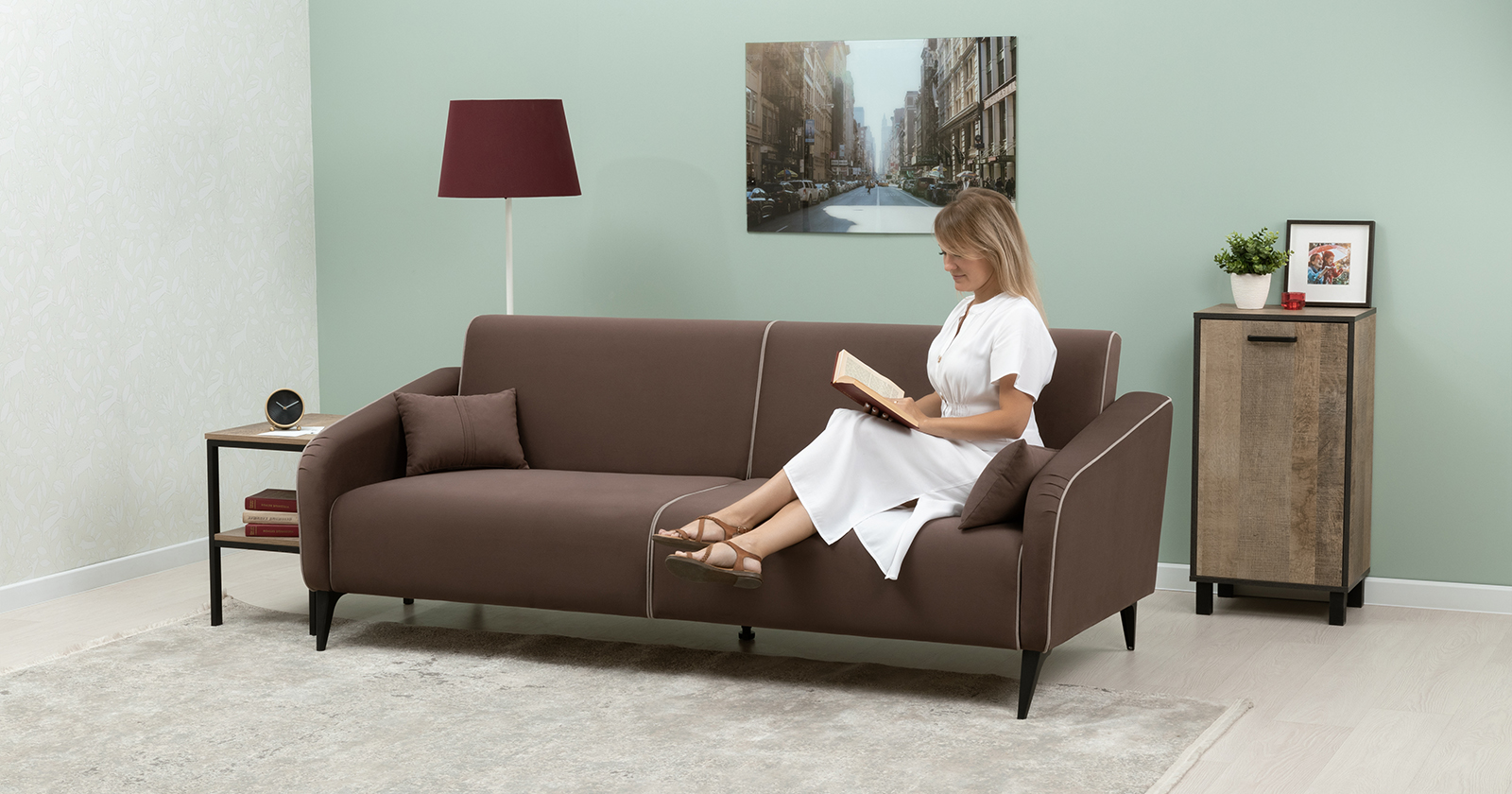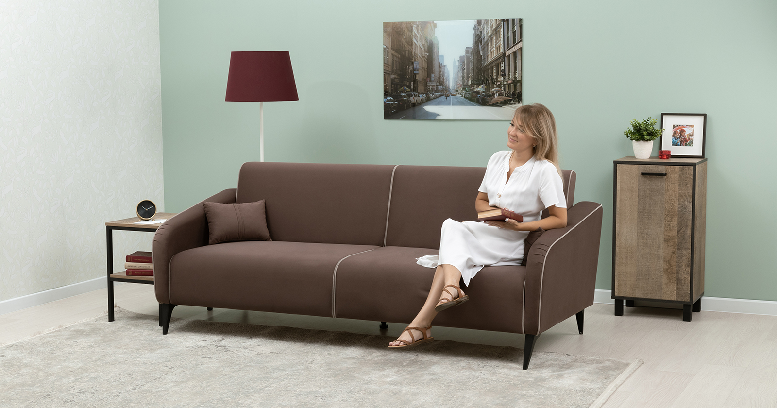 Стильный компактный диван-книжка для современных интерьеров. Дополнит гостиную, сэкономит место в гостевой, сделает уютным и функциональным кабинет или офис.