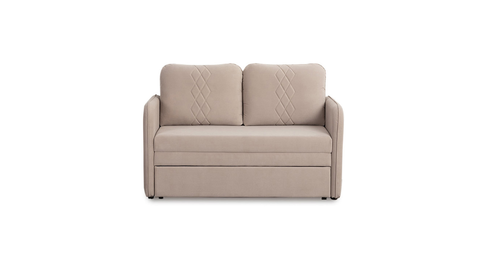 Стильный компактный диван для детской и гостиной. При своих скромных размерах он трансформируется в полноценное спальное место для детей и подростков. Лаконичный дизайн в виде декоративной стежки подчеркивает фактуру велюра, а небольшие размеры позволят разместить его в любом пространстве.