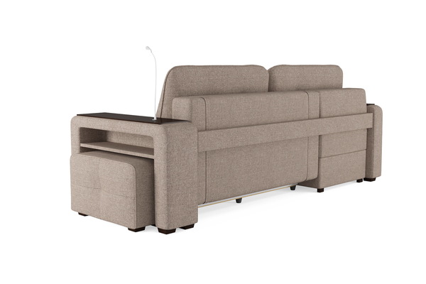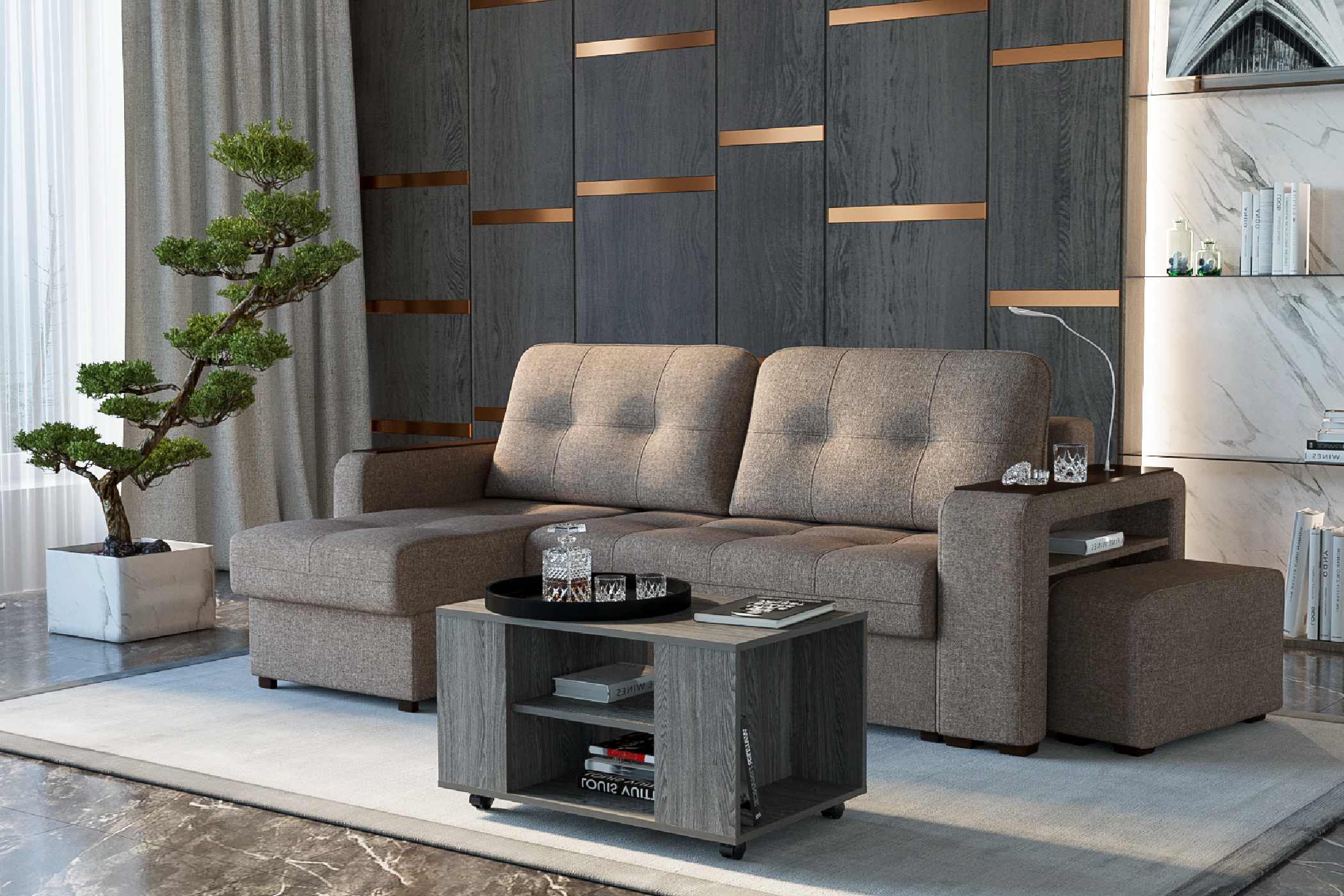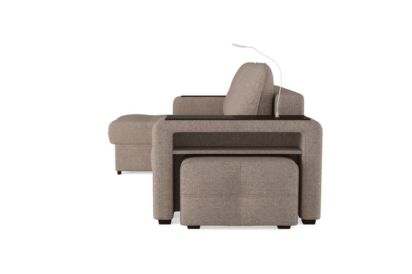 Баланс между эстетикой и функциональностью — основное требование к современной мебели. Мягкая мебель должна быть не просто красивой, но прежде всего удобной и функциональной. Особенно если речь идет о маленьких квартирах, где гостиная может быть одновременно и спальней, и кабинетом. С этой задачей прекрасно справится диван «SMART 4». Уникальный  дизайн делает модель по-настоящему универсальной. Одна боковина оснащена карманом для хранения мелочей и гаджетов, другая боковина совмещает одновременно: рабочую поверхность, за счет широкой накладки, двойной  usb - порт  и портативную лампу точечного света, которая входит в комплект. Добавить контрастных деталей в интерьер поможет пуф, интегрированный в подлокотник. Этот вариант для современных людей, которые ценят комфорт и удобство отдыха.