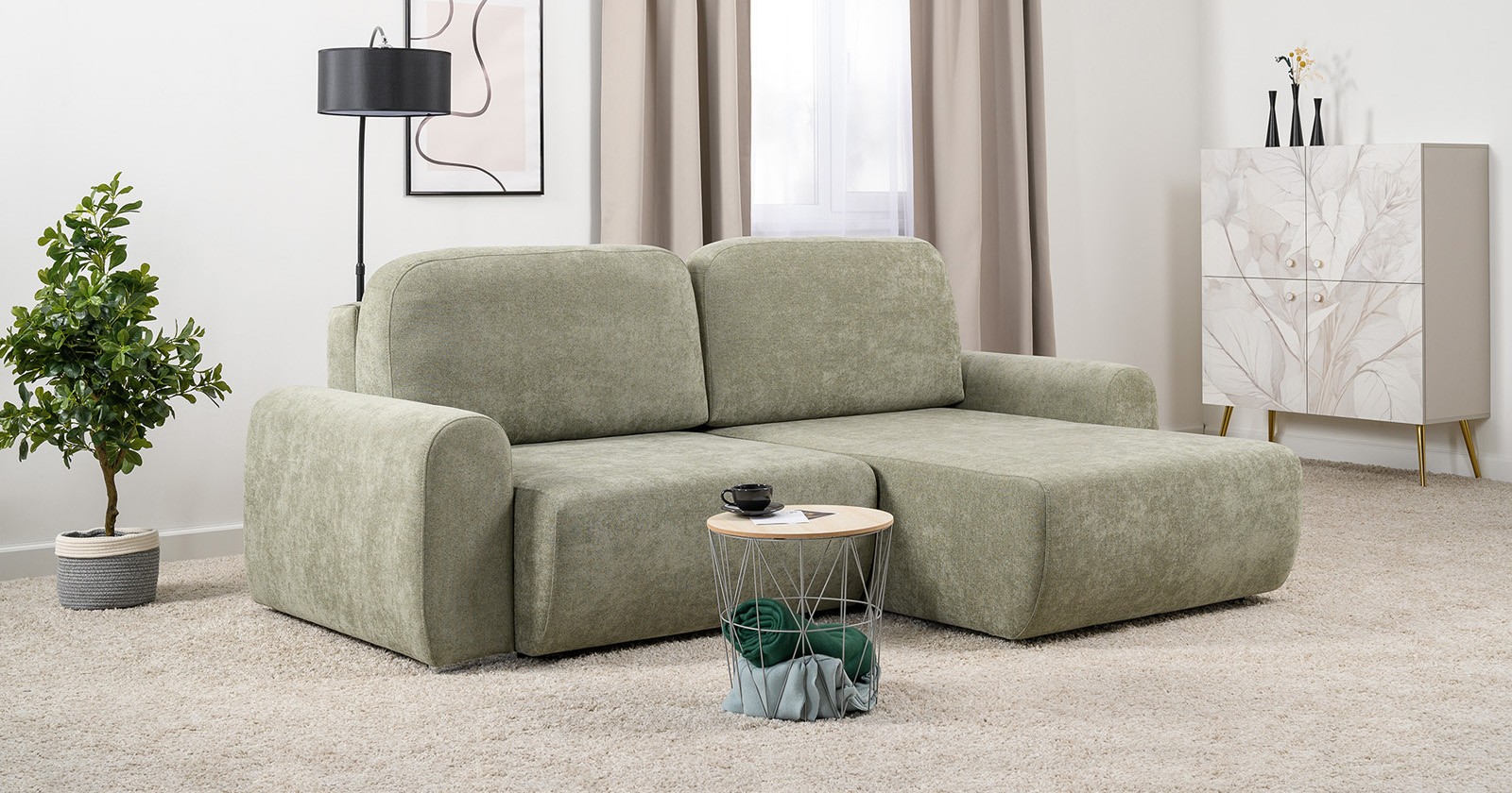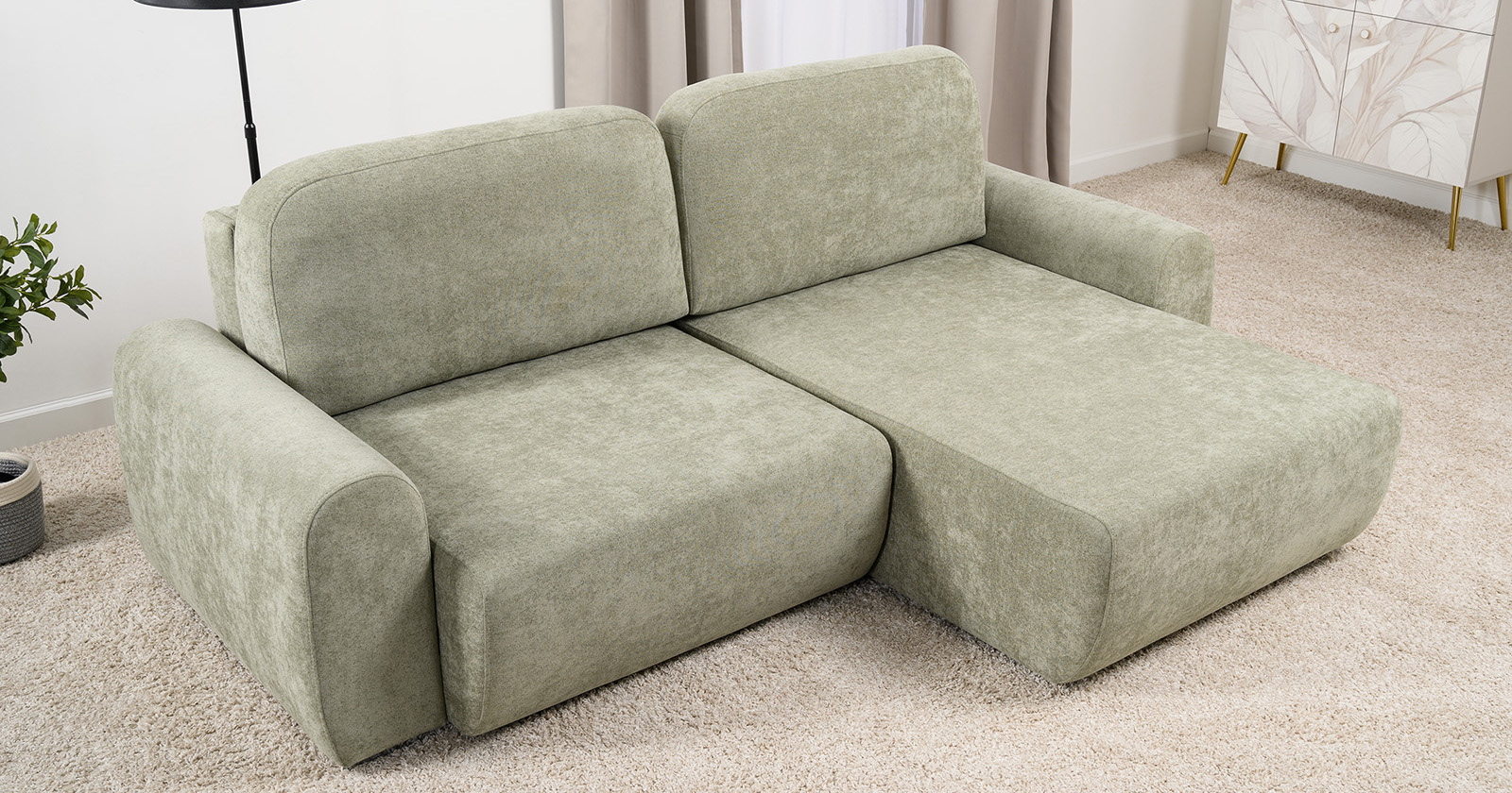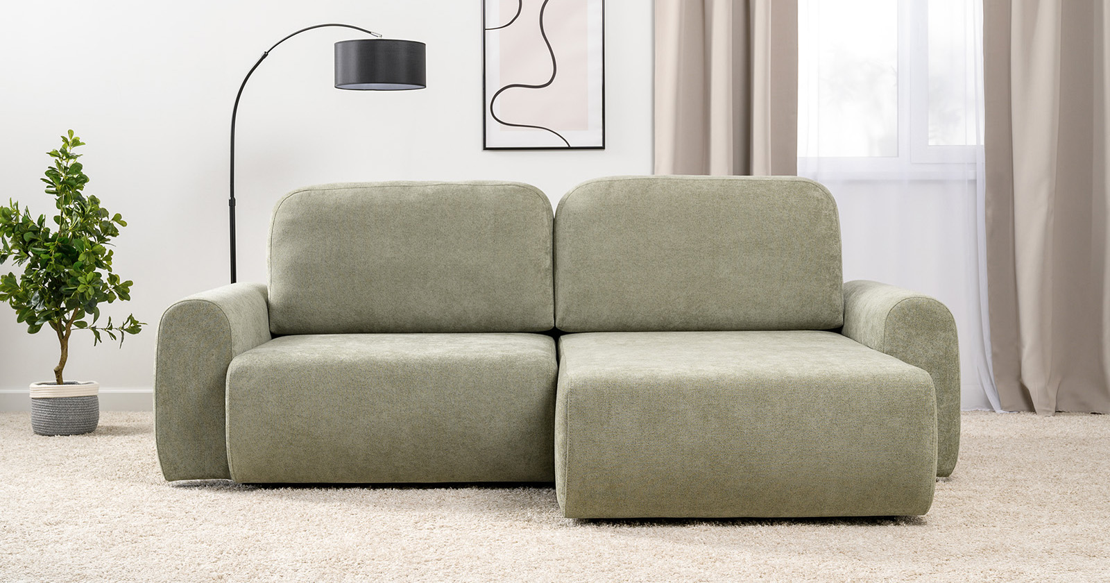 Диван-кровать угловой Тэдди 1503 композиция 2, букле Pique 007 оливковый, модульная система, сборка на любую сторону