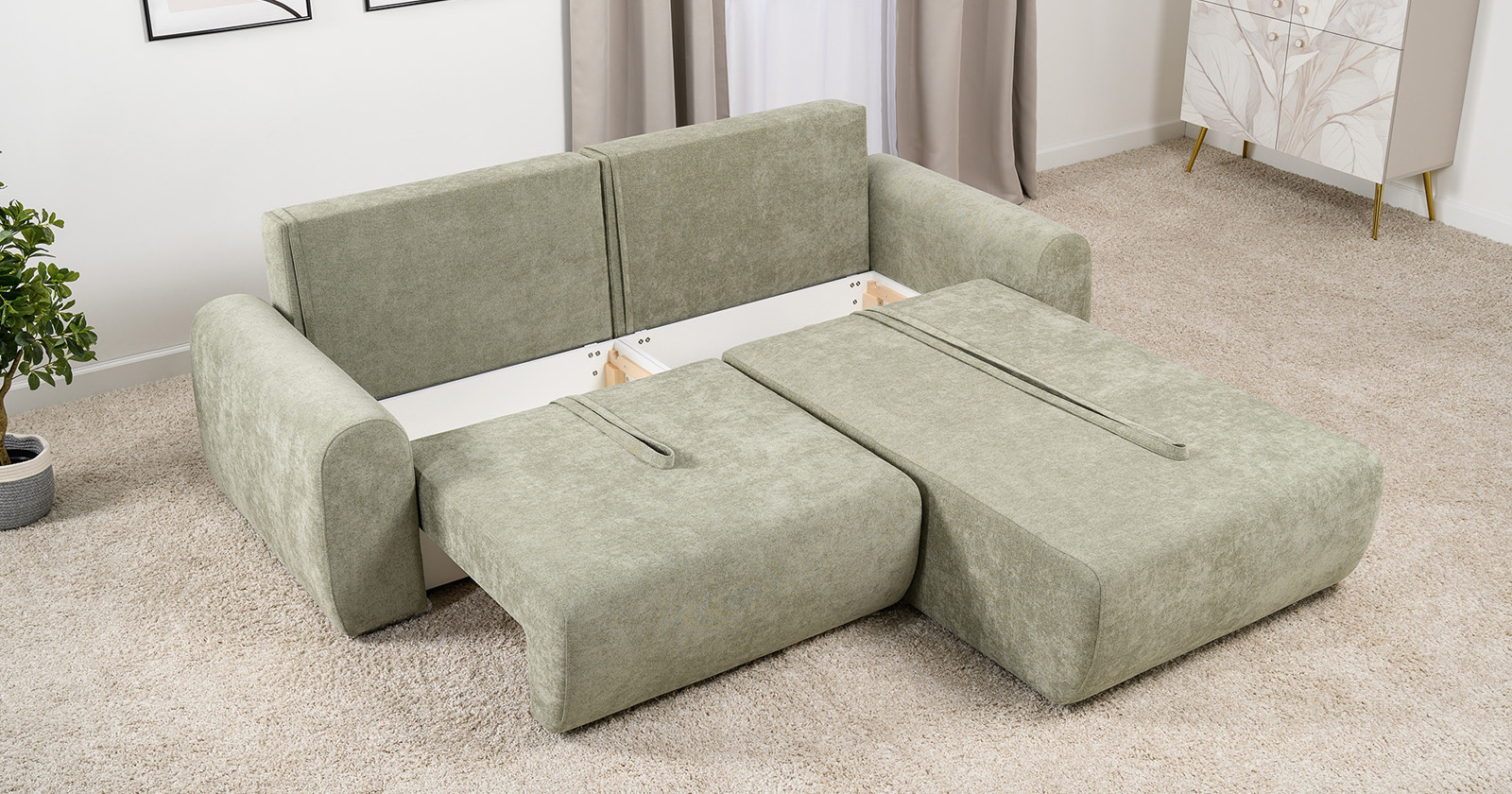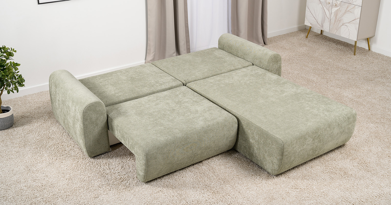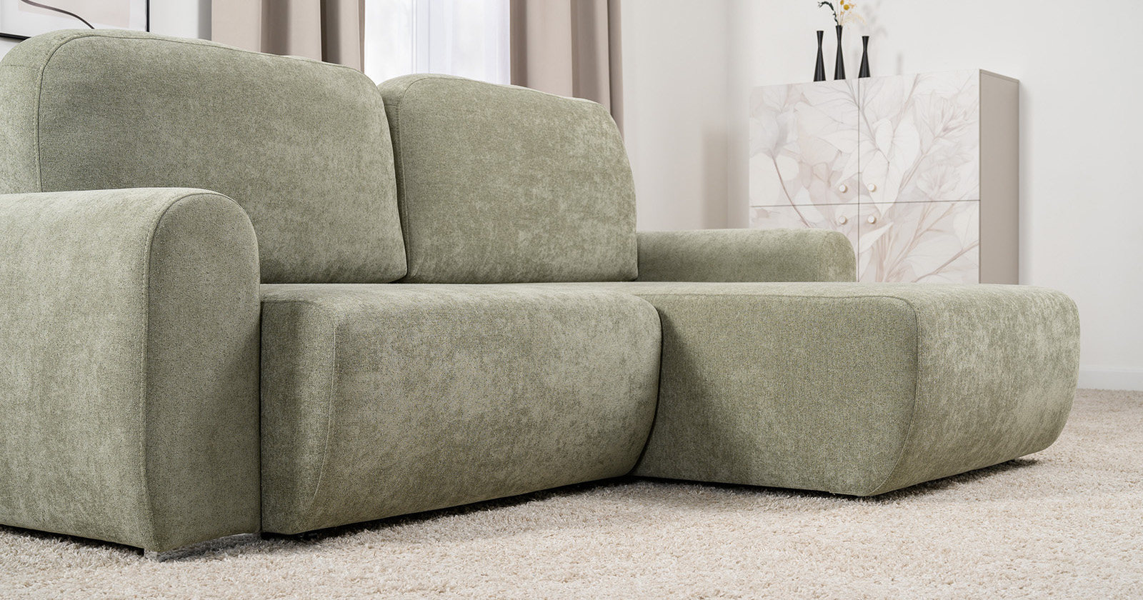 Диван-кровать угловой Тэдди 1503 композиция 2, букле Pique 007 оливковый, модульная система, сборка на любую сторону