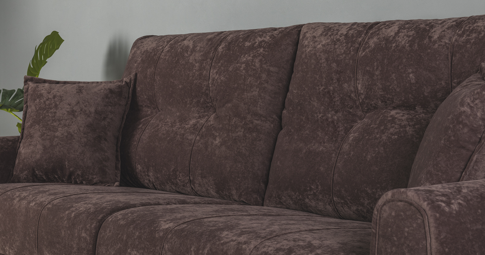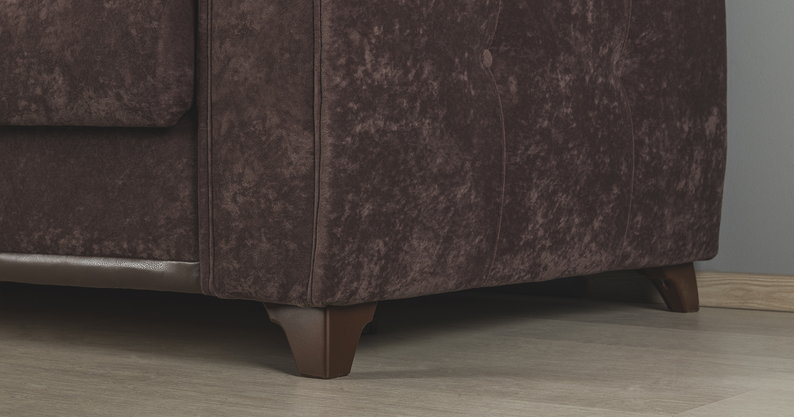 Выполнен в модном мягком велюре ROMANCE оригинальной фактуры. Ткань легко чистится, устойчива к зацепам, обладает повышенной износостойкостью. Благодаря особой технологии гладкого крашения Frozen Flower на поверхности ткани присутствует легкий краш–эффект, подчеркивающий невероятно мягкую фактуру ткани.