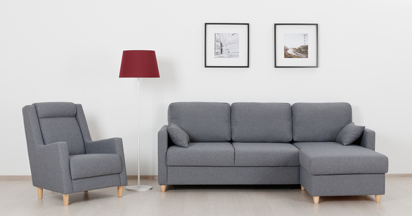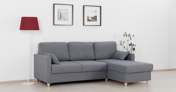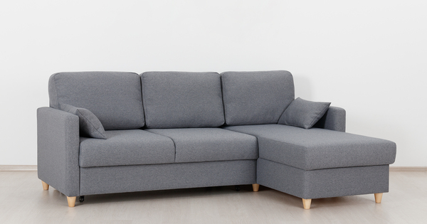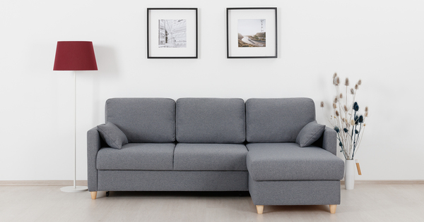 Диван-кровать угловой Тэдди 1506 композиция 2, букле Pique 011 серый, модульная система, сборка на любую сторону