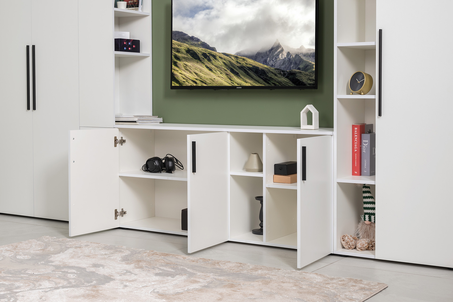 Тумба под ТВ Эйр 16.55 белый PE шагрень, собирается на любую сторону