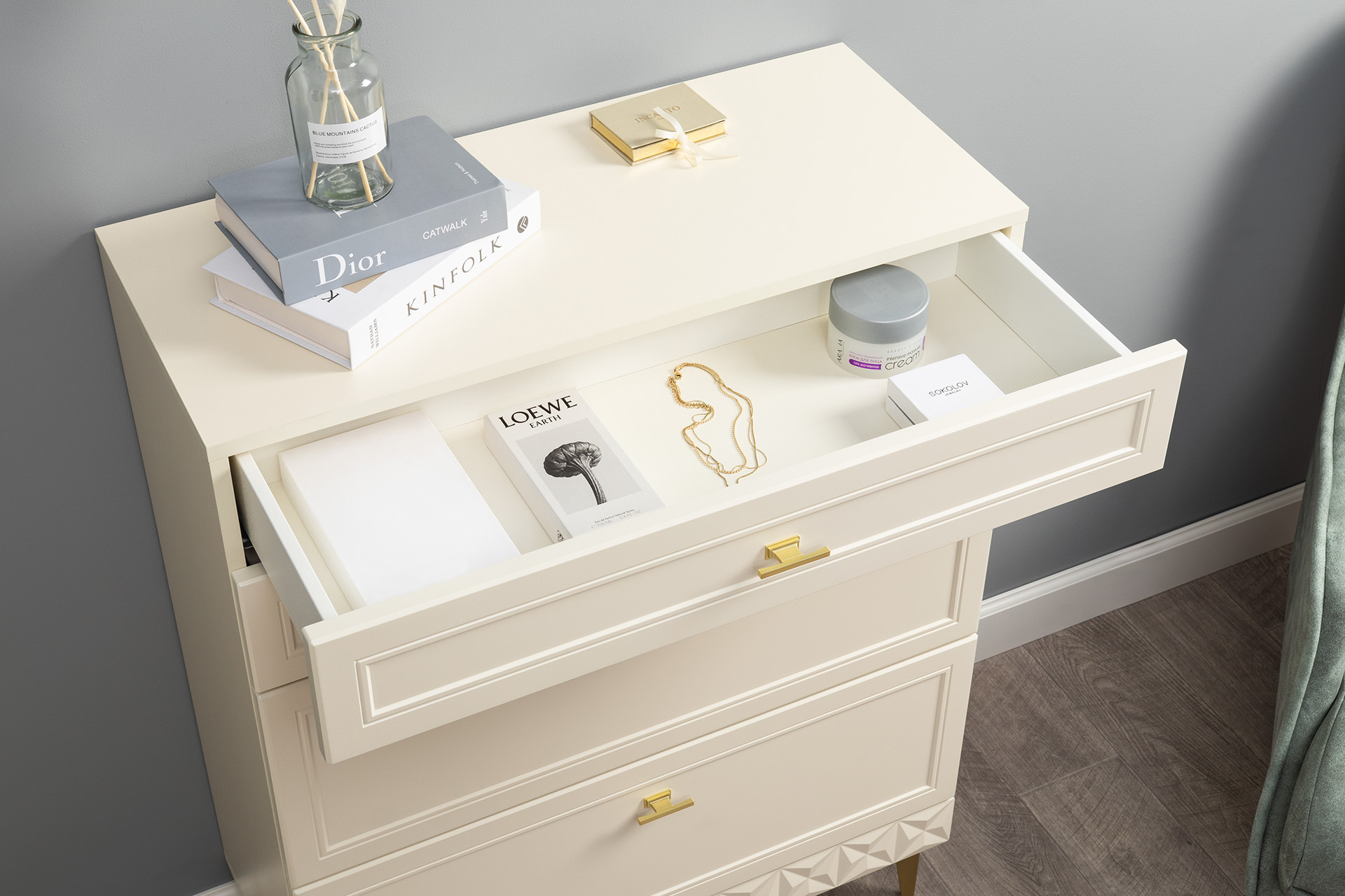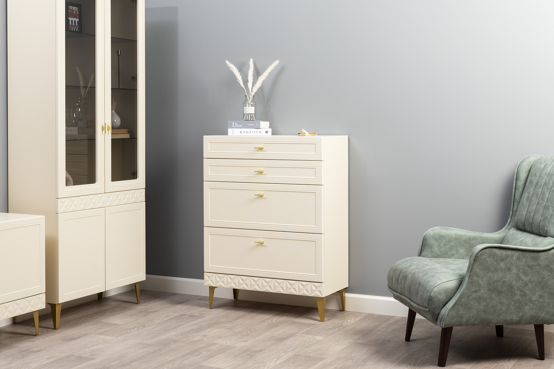 Комод Марион 16.249 слоновая кость С341 PE, слоновая кость 6898 ПВХ, белый PE шагрень