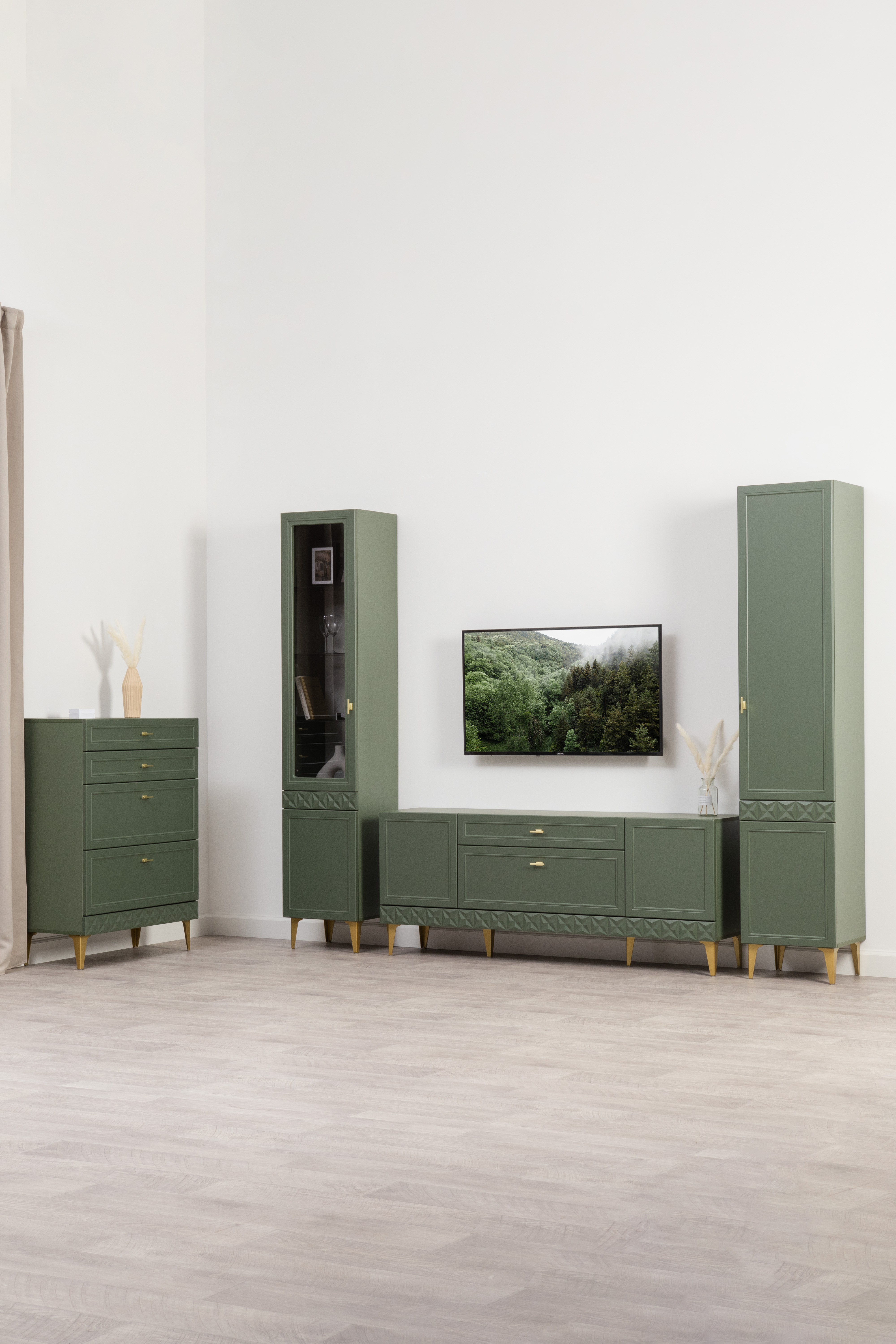 Комод Марион 16.249 дымчатый зеленый K521, олива шагрень AG 1050 ПВХ, белый PE шагрень