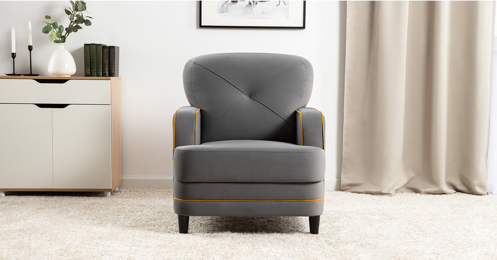 Кресло для отдыха Черри ТК 287 велюр Irida 21 серый, Эвита умбер горчичный