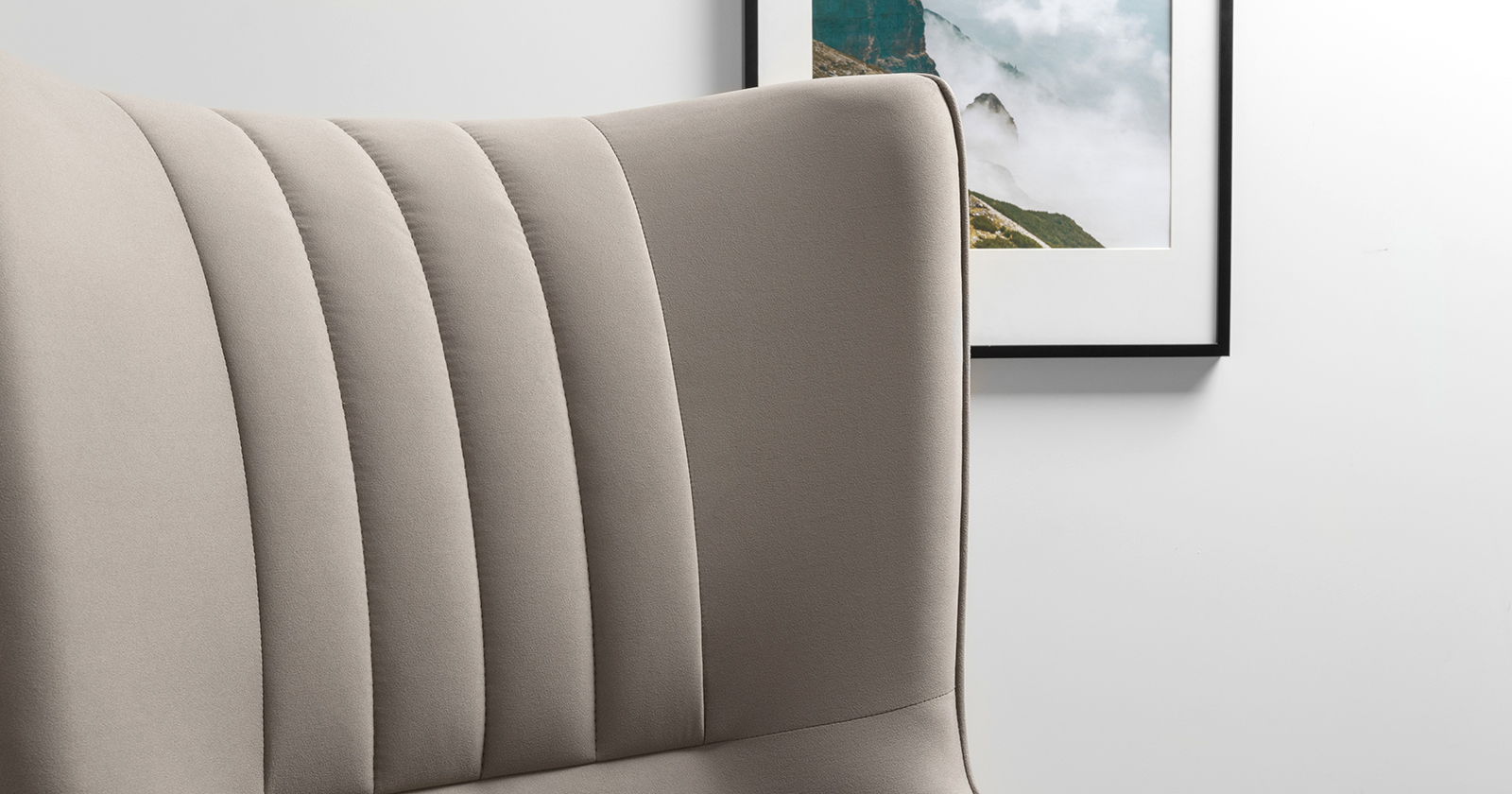 Вертикальная объемная стежка в средней части спинки; кант на спинке, подлокотниках и декоративной подушке