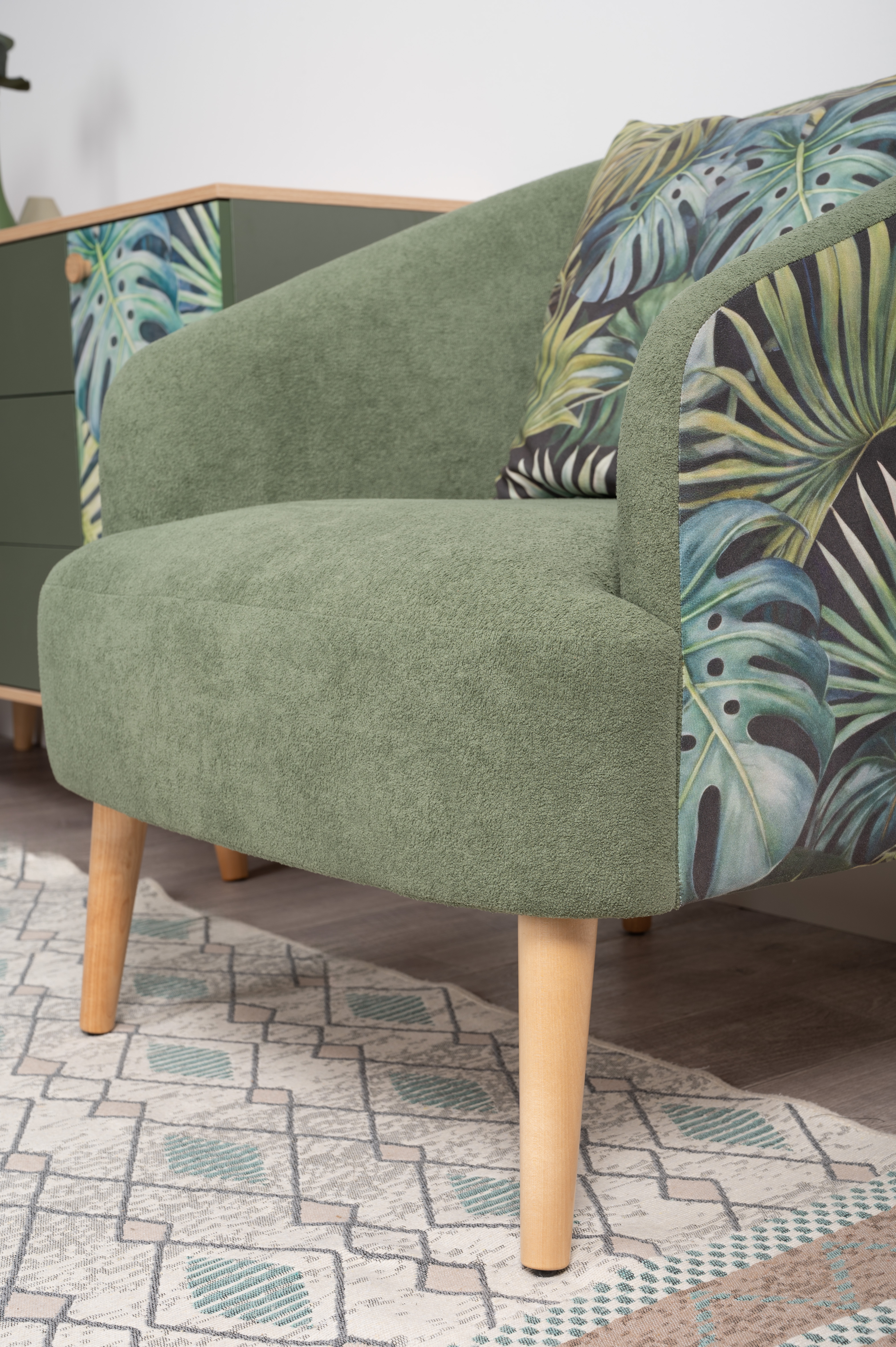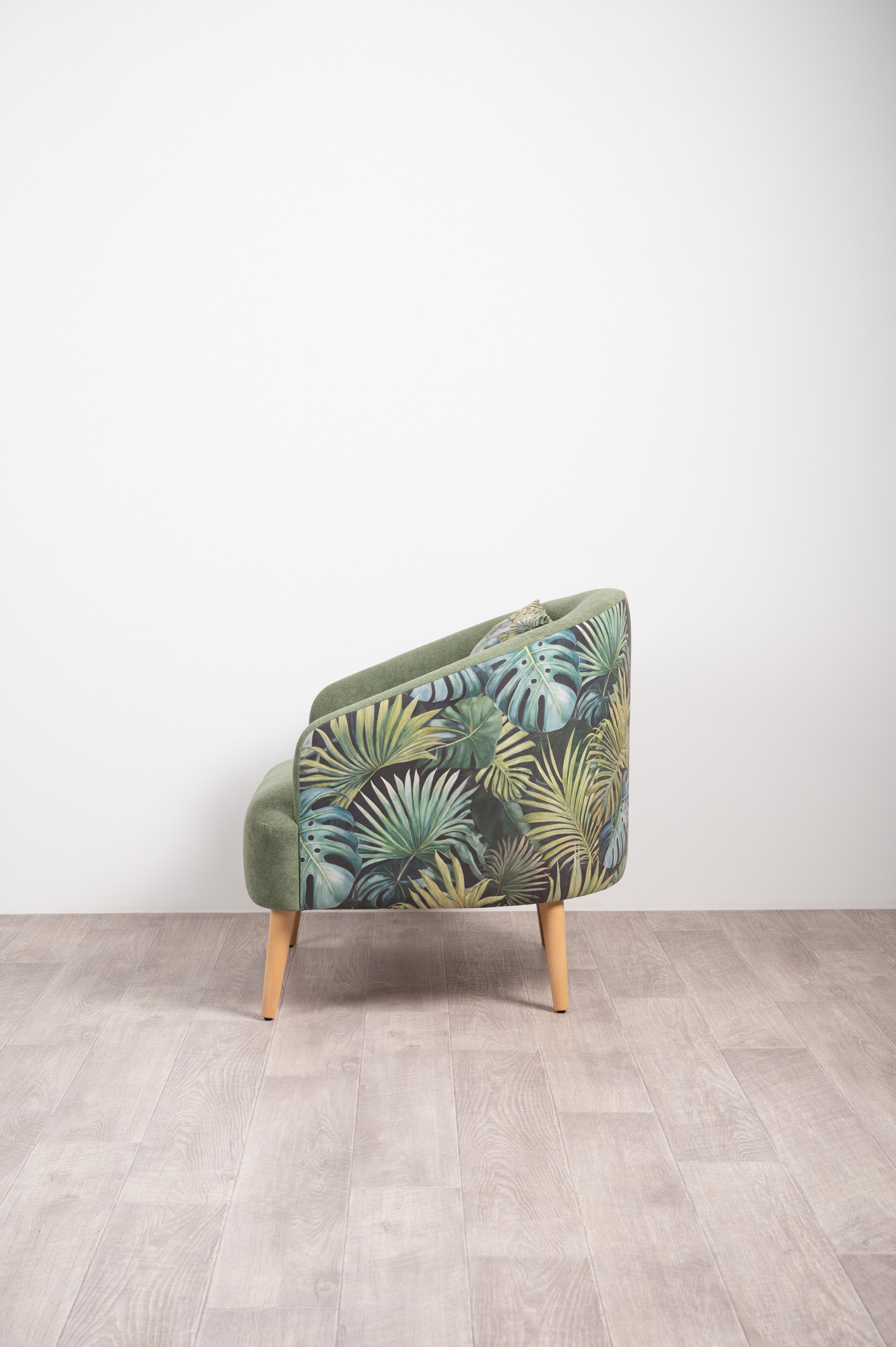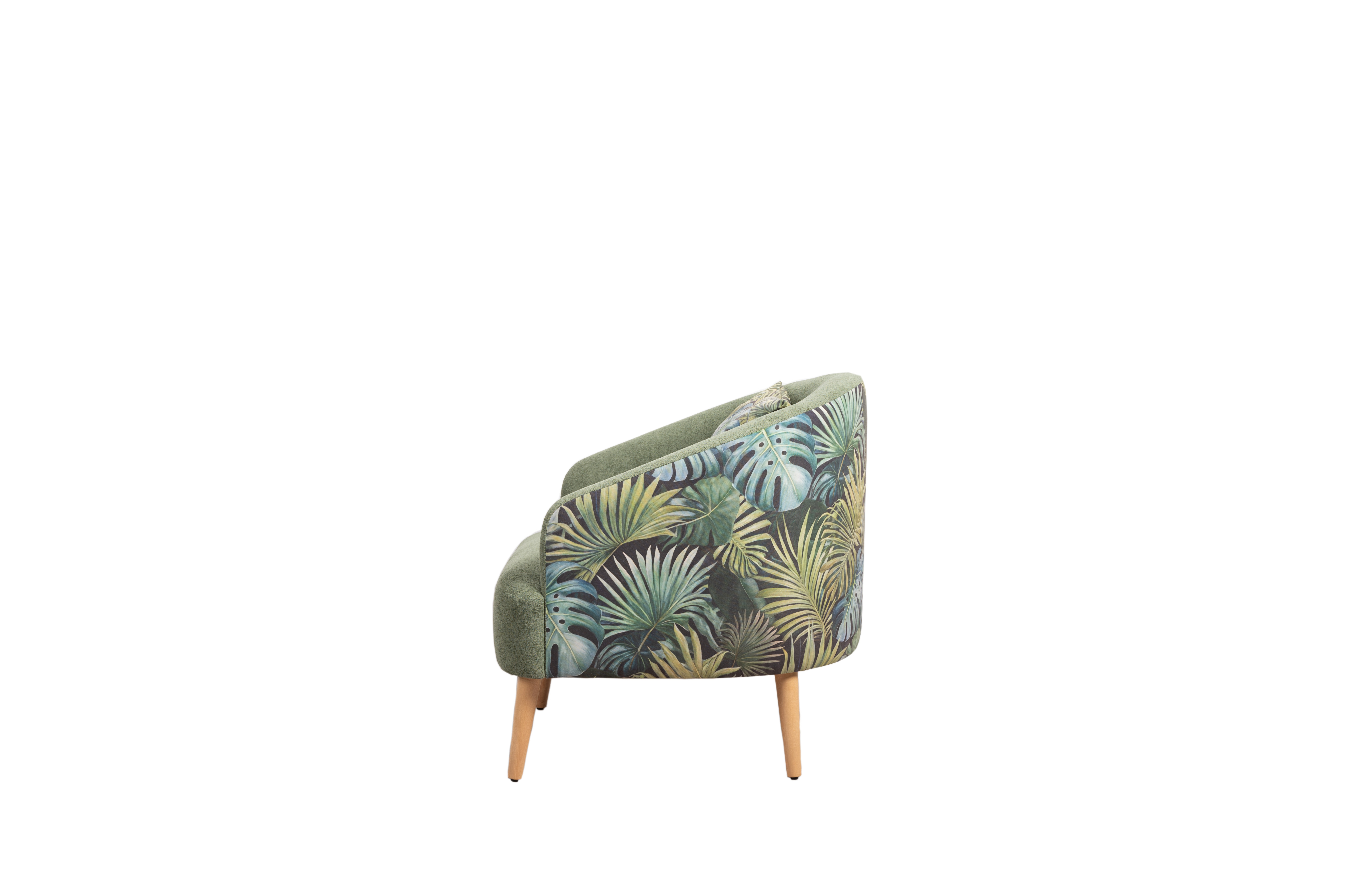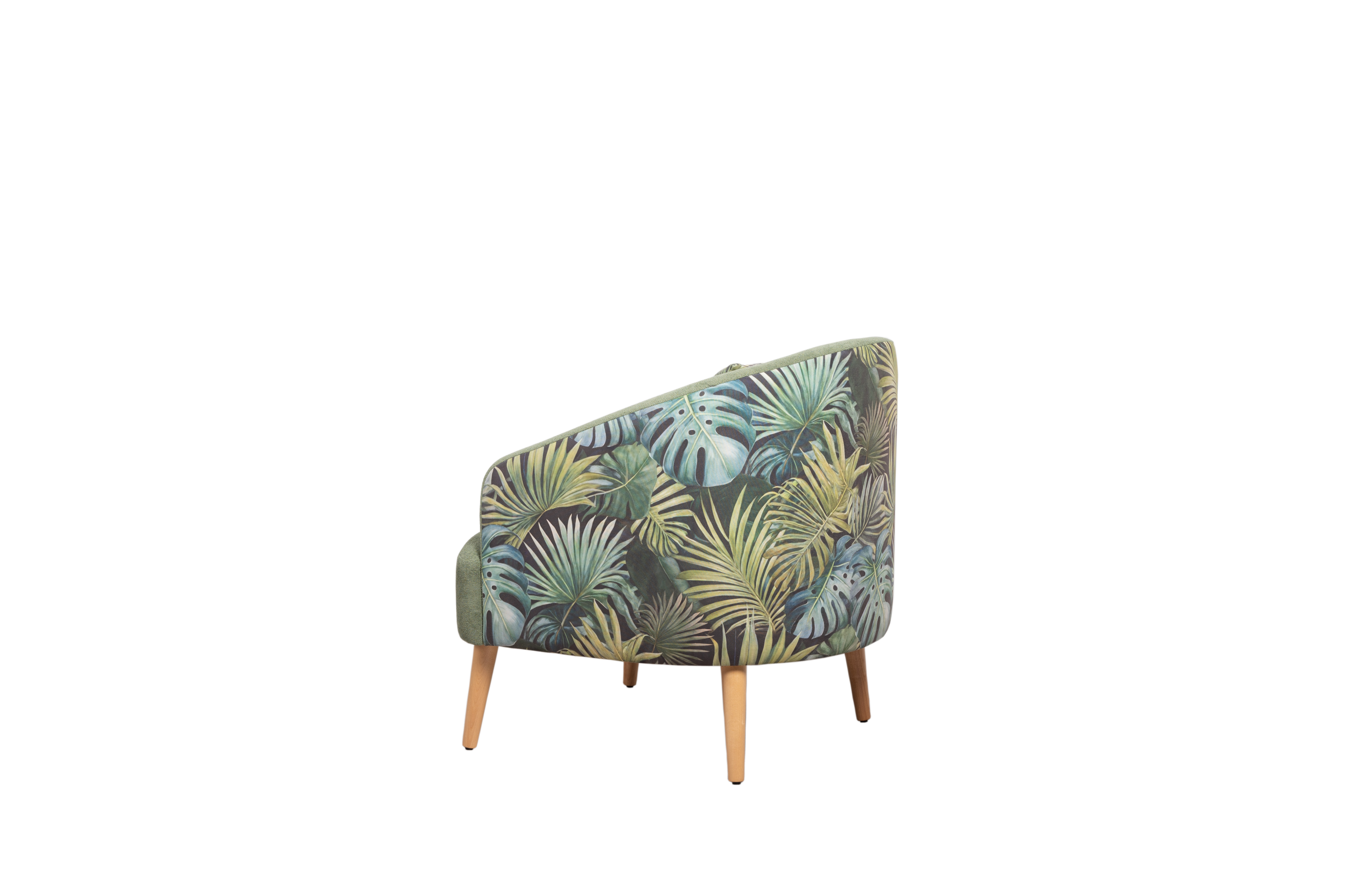 Маттиас — оригинальное кресло готовое стать акцентом в интерьере. Яркий тропический принт «монстера» на спинке мгновенно сделает комнату живой и современной.