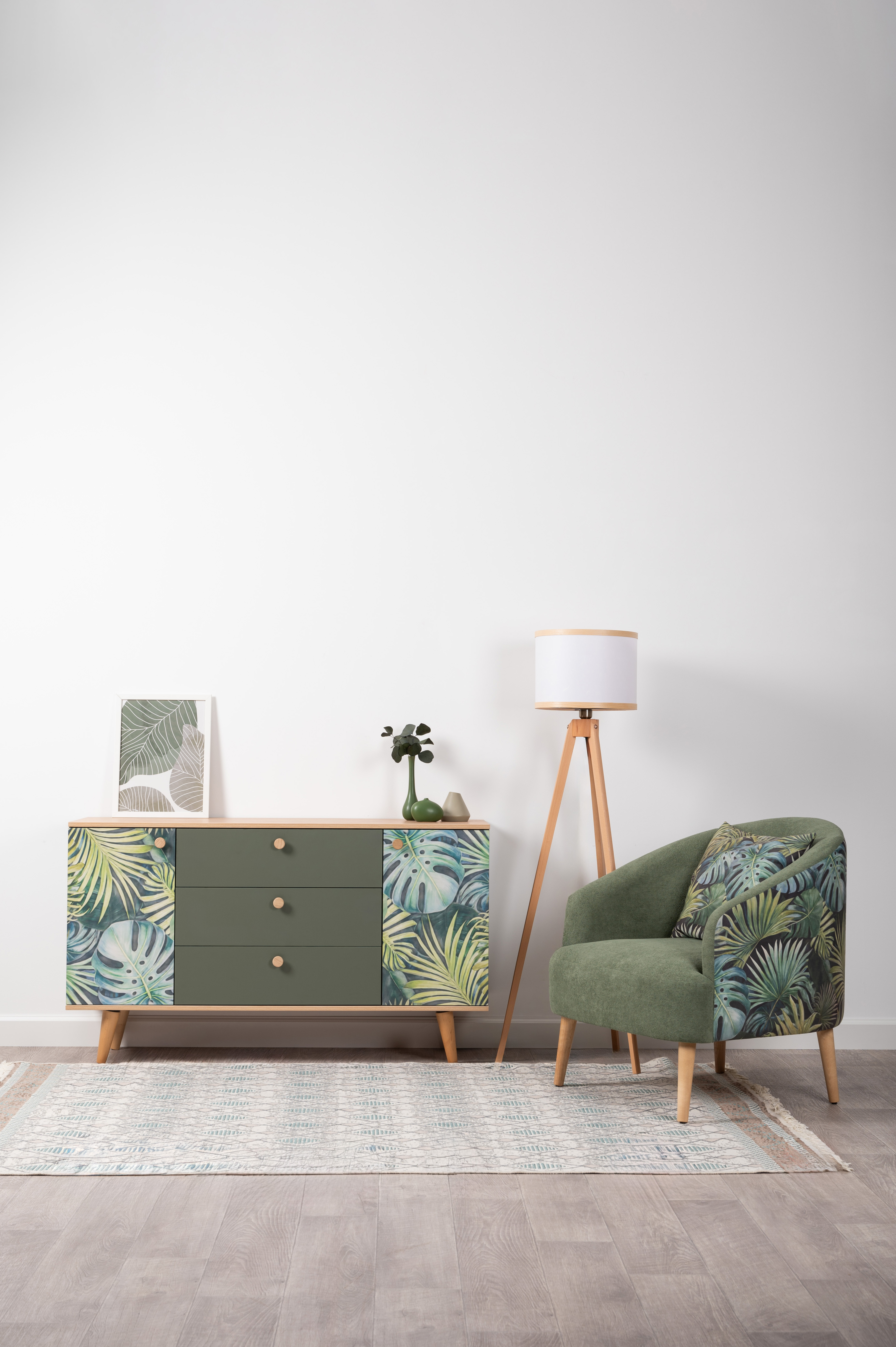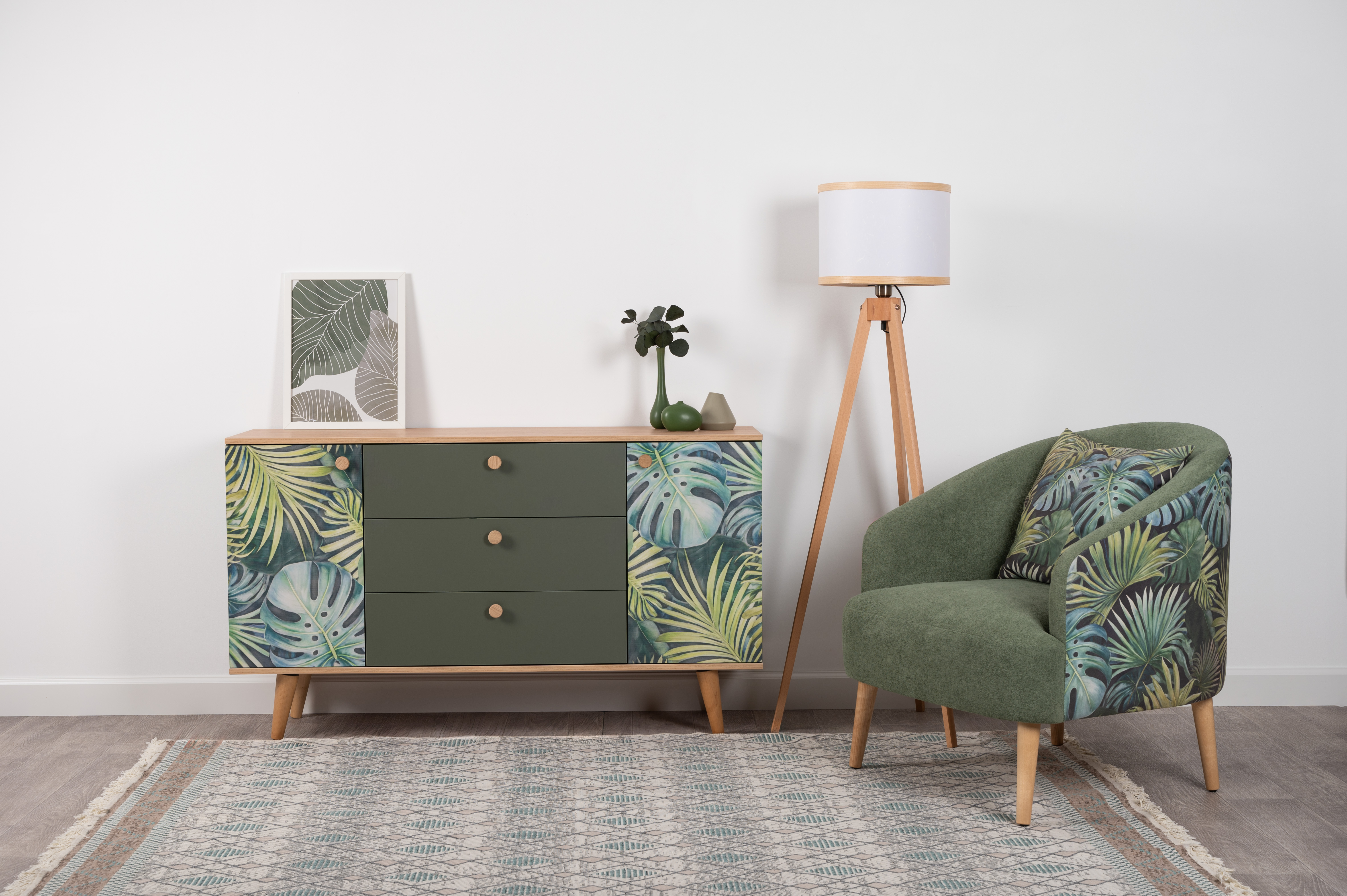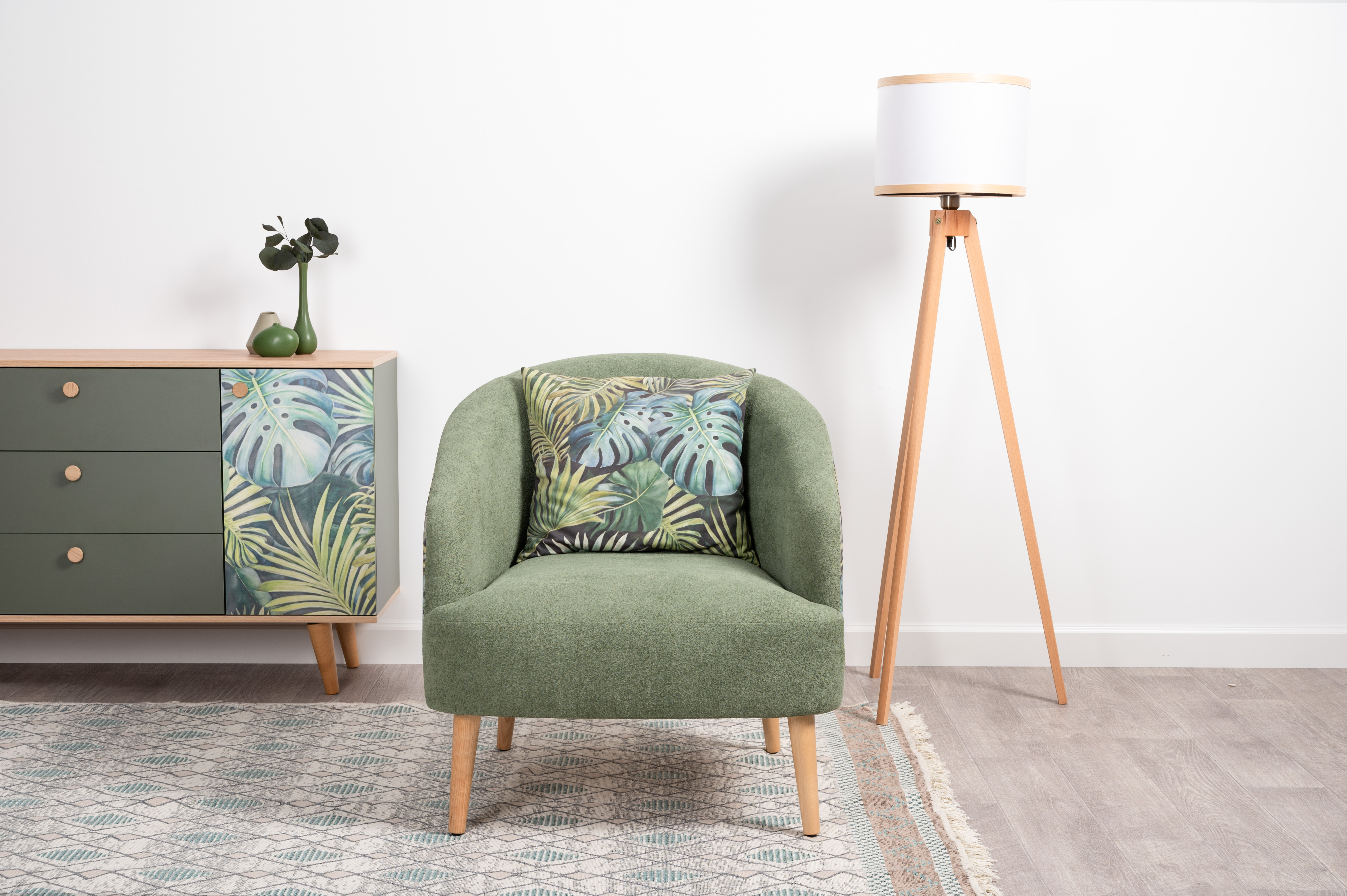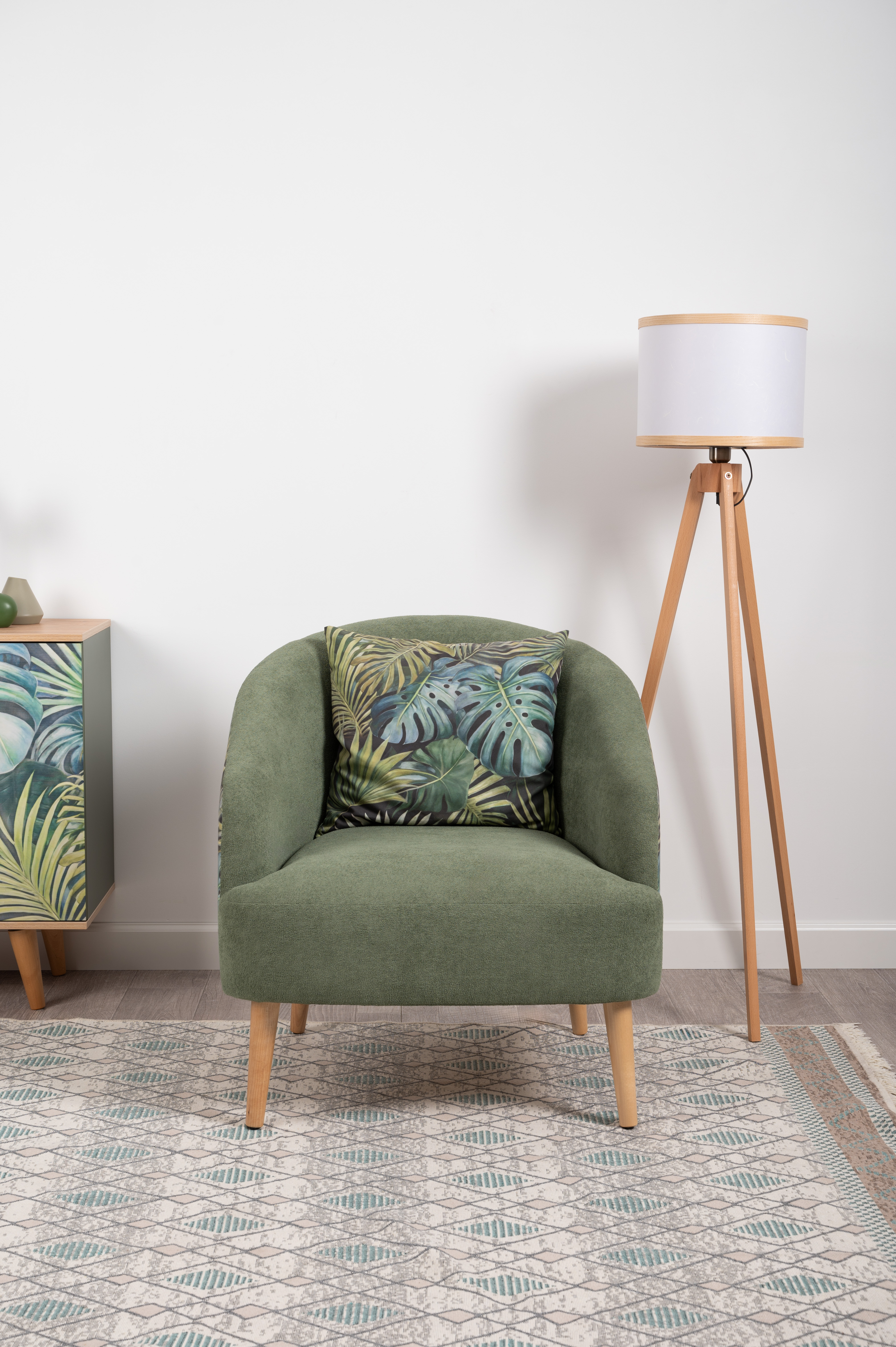 Маттиас — оригинальное кресло готовое стать акцентом в интерьере. Яркий тропический принт «монстера» на спинке мгновенно сделает комнату живой и современной.