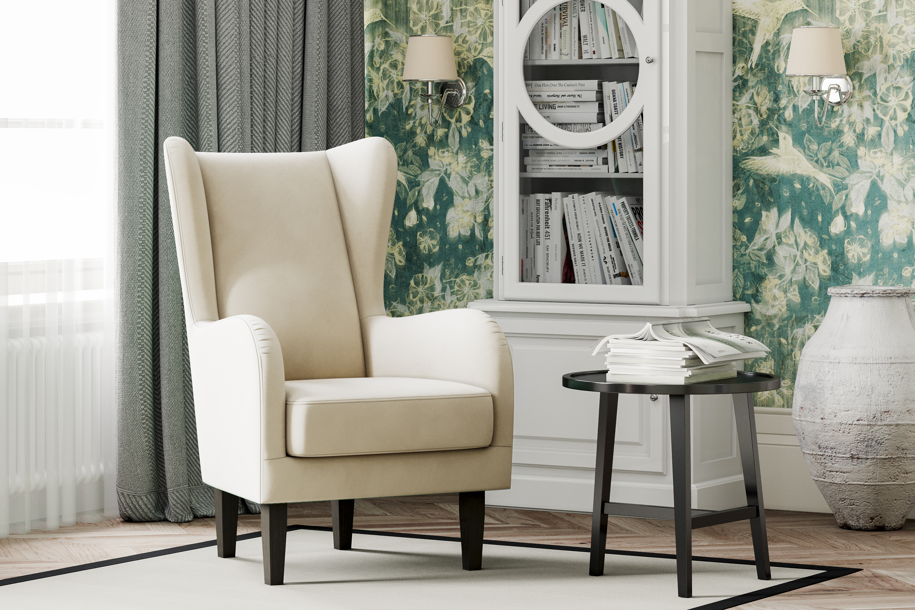 Модель «Шеффилд» - кресло с прямой спинкой для любителей классики. Каминное кресло ― самая классическая трактовка из всех существующих современных вариантов вольтеровского кресла. В нем остались высокие ножки, глубокая посадка, а прямая спинка и «ушки» с высокими подлокотниками прячут от суеты. В такое кресло легко сесть, но трудно подняться, настолько оно уютное. "Шеффилд" отлично подходит для классического интерьере, так и для современного: минимализм, лофт, ар-деко и даже как акцент в скандинавском и хай-тек стилях. Модель выполнена в тканях велюр и рогожка. Цветовые комбинации от молочно-белого до насыщенного изумрудного. Ножки выполнены из дерева.