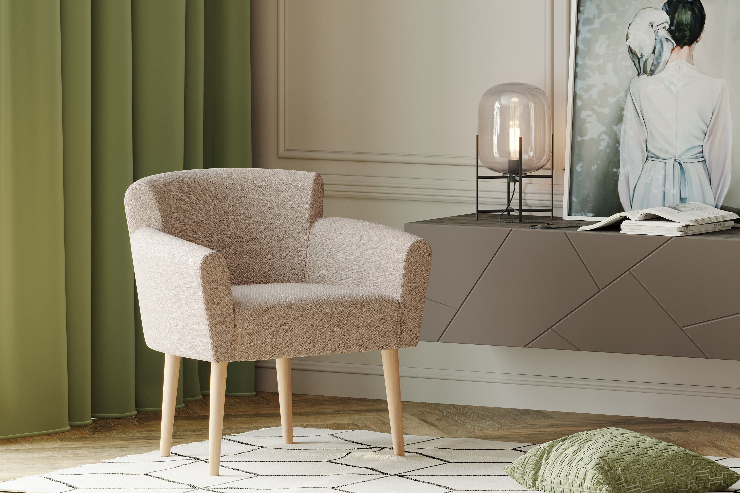 Кресло для отдыха Вирджиния рогожка Sherlock 932 серо-бежевый