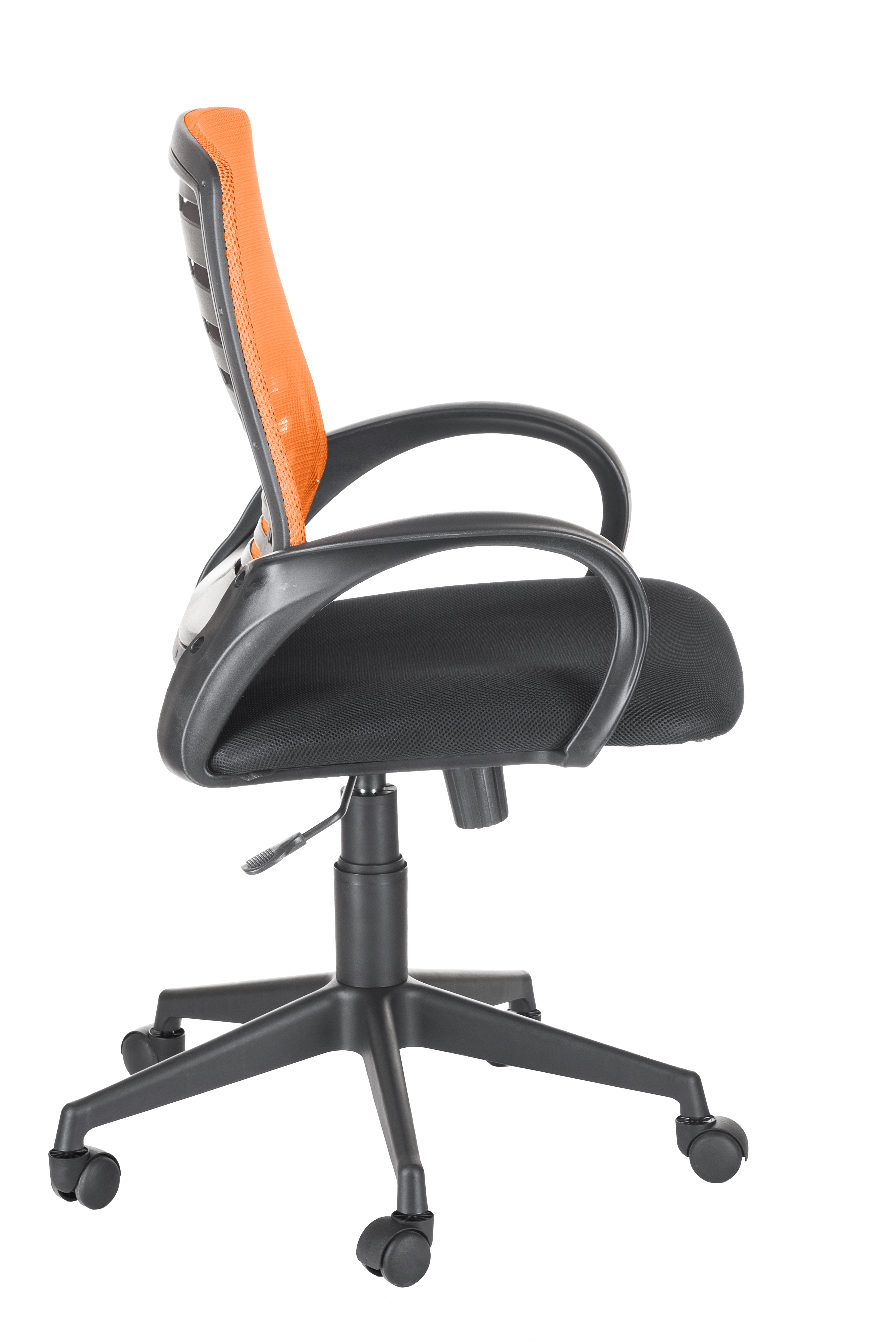 Кресло на колесах Ирис люкс обивка ткань-сетка TW сидушка черный, спинка оранж, подлокотники пластик, крестовина пластик, механизм качания