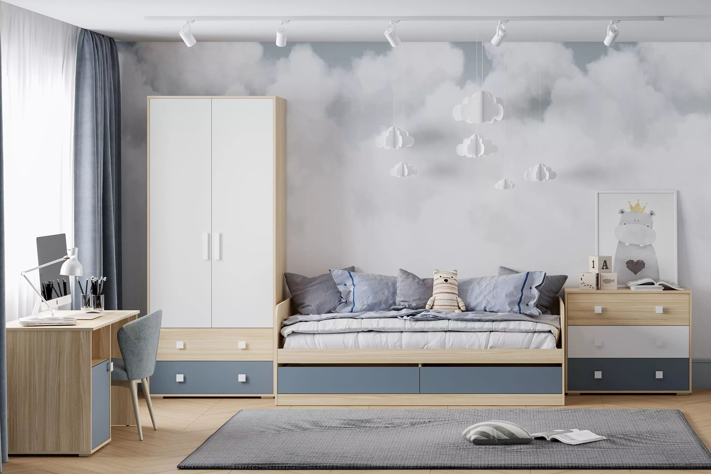 Элиот – отличный комплект мебели для подростковой комнаты! Мебель для современного подростка должна быть стильной, молодежной, функциональной и безопасной. Коллекция Элиот отвечает всем этим требованиям. «Взрослый дизайн» мебели включает три цвета декора, идеально гармонирующие между собой. Удобные ручки разной формы позволяют безопасно и комфортно пользоваться всеми ящиками, тумбами и шкафами.