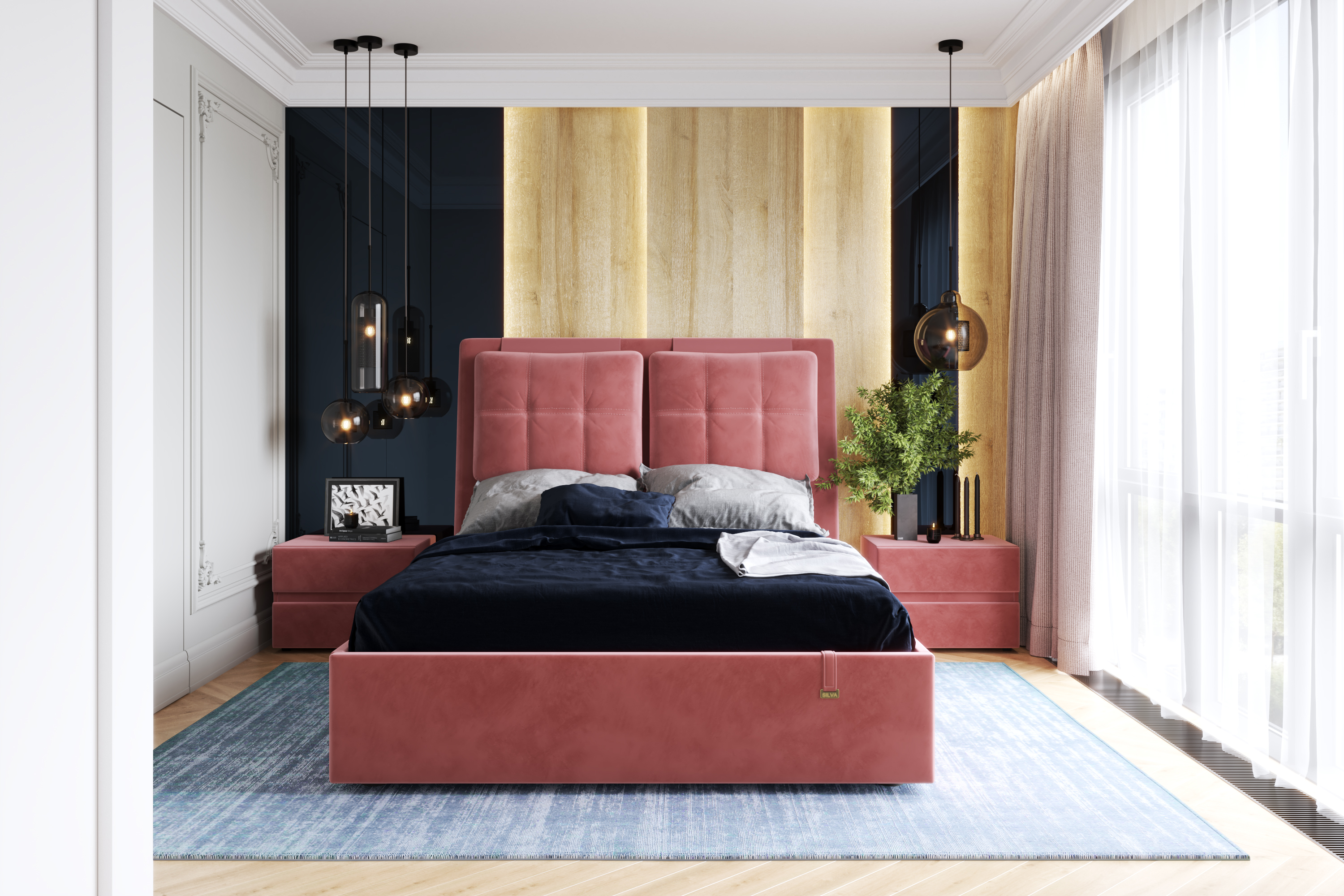 Кровать Ester 1400 велюр Ультра коралл с ортопедическим основанием и подъемным механизмом