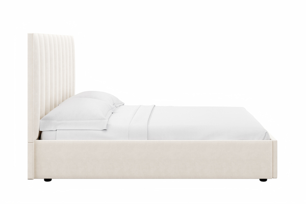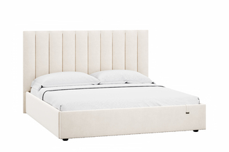 Кровать «Ingrid»  подойдет для современных интерьеров спален, впишется в стиль ретро и скандинавский минимализм. Обивка будет отлично сочетаться с любыми цветовыми оттенками отделки и мебели. Кровати выполнены в нейтральных и ярких тканях велюр, что позволяет подобрать подходящий вариант почти под любой интерьер. Изголовье имеет прямоугольную форму, повторяя очертания кровати. Дизайн модели отличается высоким изголовьем с вертикальными строчками и углублениями.