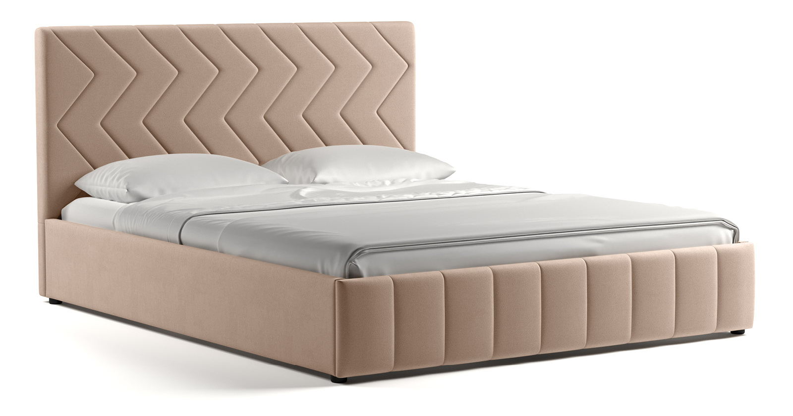 Кровать Милана 160 велюр бежевый кофейный с ортопедическим основанием и подъемным механизмом
