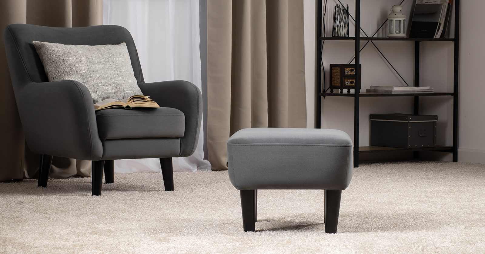 Мягкие линии и визуальная легкость — отличительные черты пуфа Дакота. Гармонично дополнит диван и кресло из этой коллекции.