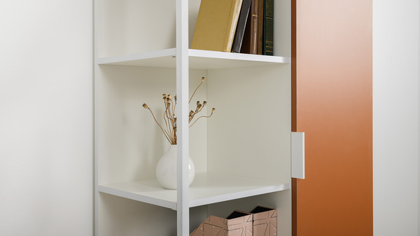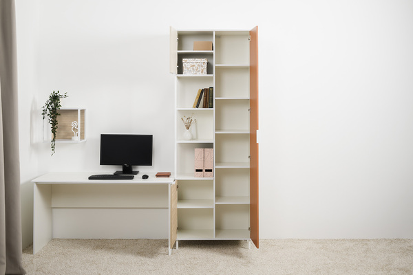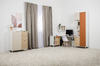Все вещи ребёнка будут на своём месте. На столе есть крепление для рюкзака или наушников. Наполнение шкафов для одежды можно менять на выбор: полки либо штанги. Петли фасадов оснащены доводчиками.