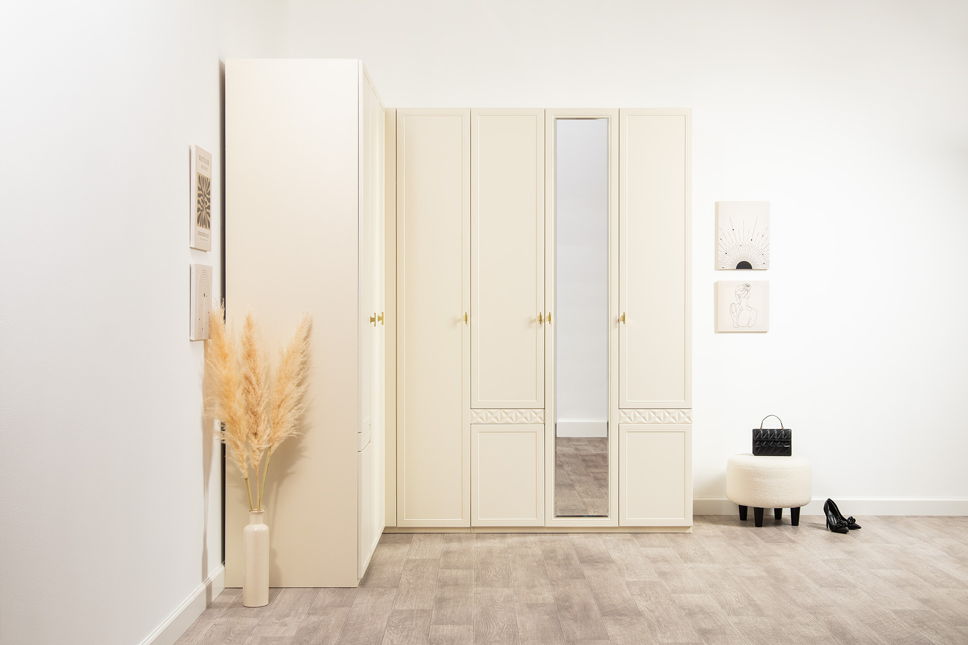 Шкаф угловой Марион 16.339 слоновая кость С341 PE, слоновая кость 6898 ПВХ (собирается на любую сторону)
