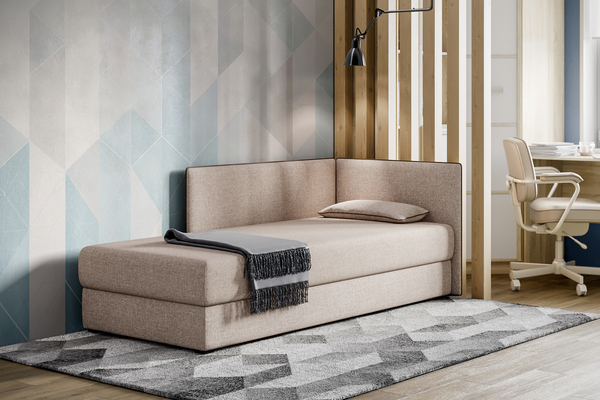 Тахта MIA правая рогожка Sherlock 932 серо-бежевый, кожзам Madrit 925 коричневый